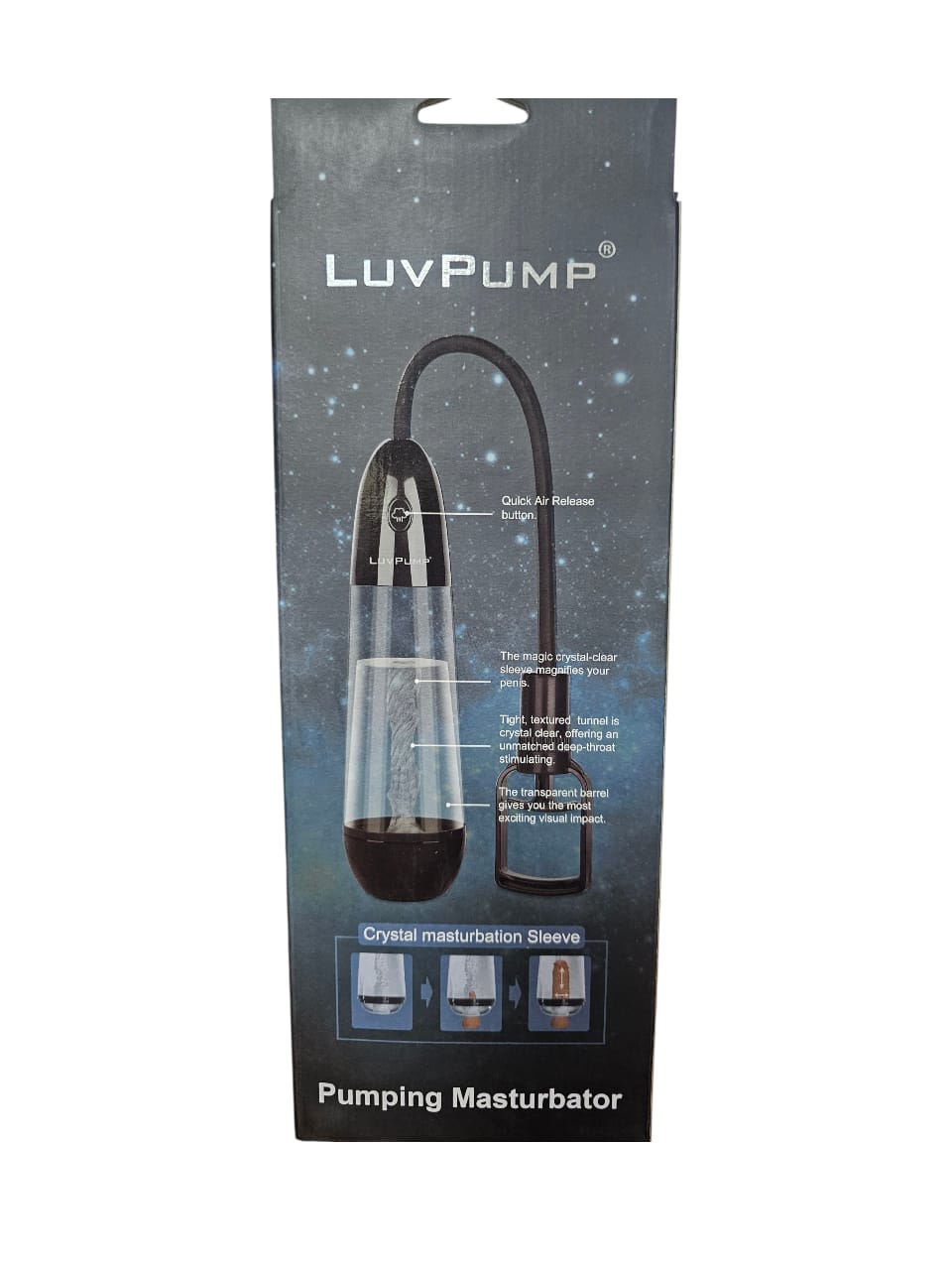 LuvPump Pumping Masturbator lets you get fully “pumped up” before masturbation or intercourse, combining realistic suction with deep-throat stroking action for an all-in-one pleasure experience.